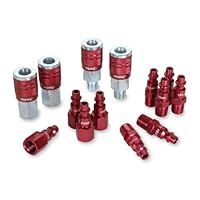 I would have given this 5 stars but one of the female couplers was defective which didn't allow the fittings to seat correctly. Amazon offered to send me a replacement kit if I returned it, but I installed all the fittings already so it would be too much of a hassle to replace just the one piece. Overall, it was still worth the purchase.We had bought several 14 pc sets and use these in an industrial environment and switch out air tools several times a day on an air line. After about a month we noticed that they started leaking air due to wear on the male coupling. After looking at them they are made of aluminum instead of the steel. They would probably good for the hobby guy that doesnt use air that much, but if you swap out tools on your airline often expect them to wear fast and start leaking air. I We won't be buying them again.